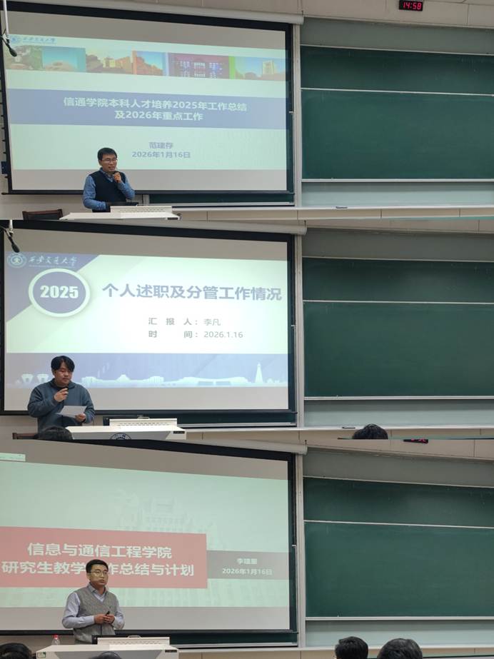 蛇影蜿蜒辞旧岁,马蹄铿锵踏新程。此次院务公开大会的召开,进一步凝聚了共识、明确了方向、激发了干劲。2026年,信通学院全体师生将在学校、学部和学院各级领导的带领下,攻坚克难、锐意进取,奋力推动学院各项工作再创新高,为学校事业发展作出更大贡献!